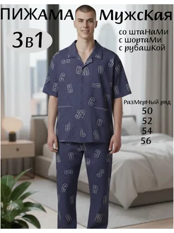 Пижама с шортами штанами и рубашкой, костюм домашний тройка