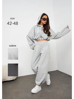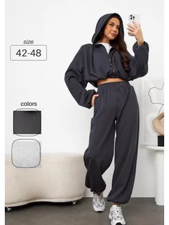 Спортивный костюм оверсайз на молнии с укороченной кофтой