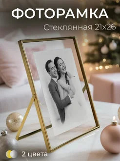 Фоторамка стеклянная 21х26 Рамка для фото 15х20 золотая