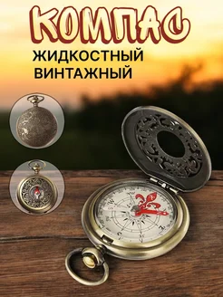 Компас туристический винтажный, металлический с крышкой