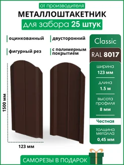 Штакетник металлический для забора 1,5м двухсторонний 25 шт