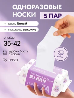 Носки одноразовые хлопковые белые высокие набор 5 пар