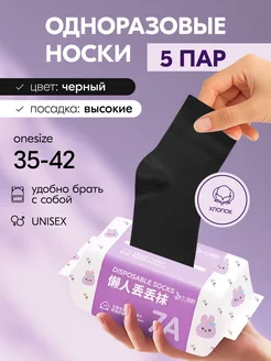 Носки одноразовые хлопковые черные высокие набор 5 пар