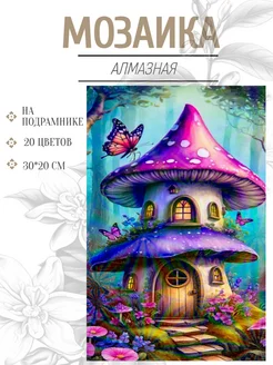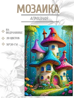 алмазная мозаика 20*30 см на подрамнике "грибной домик"