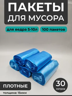 Пакеты прочные для мусора 30 л, 100 шт, 15 мкм — синие