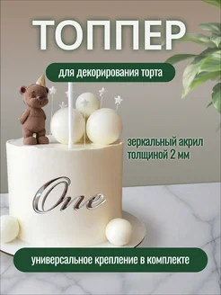 Топпер для торта "One" 10 см серебро