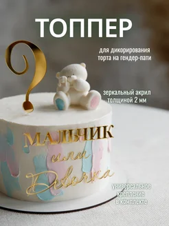 Топпер для торта Мальчик или Девочка акрил золото
