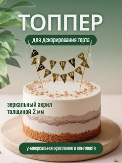 Топпер для торта слова "Happy Birstday" золото