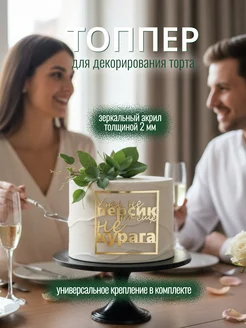 Топпер для торта "Персик курага" квадратный акрил золото