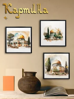 Картина мусульманская в раме Мечеть Аль-Акса 3 шт 25х25 см