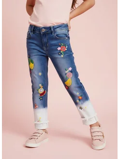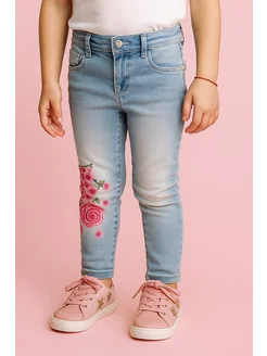 Джинсы скинни детские с вышивкой, стразами, резинкой 92-110