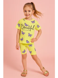 Нарядный костюм хлопок шорты и футболка с бабочками