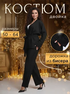 Костюм двойка брючный нарядный офисный деловой с бисером