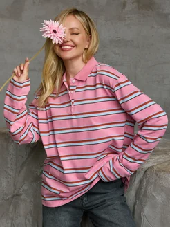 Лонгслив в полоску оверсайз розовый хлопок