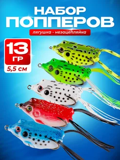 Поппер лягушка незацепляйка для рыбалки на щуку 5 шт