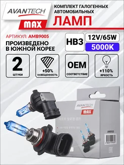 Лампы hb3 галогеновые 5000K белый свет 65W комплект 2 шт