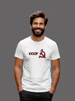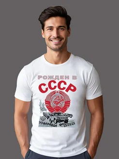 Белая футболка 180 грамм с принтом Рожден в СССР