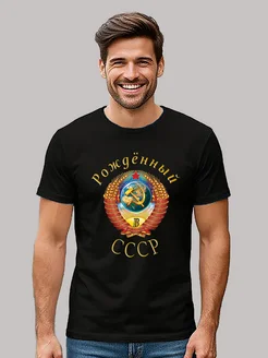 Черная футболка 180 грамм с принтом Рождённый в СССР