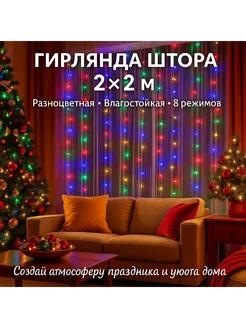 гирлянда штора 2х2 на окно разноцветная