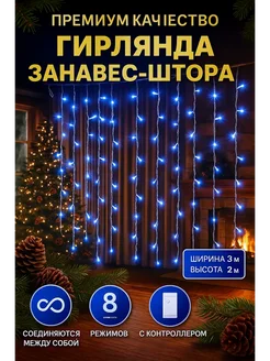 гирлянда штора 3х2 на окно синяя