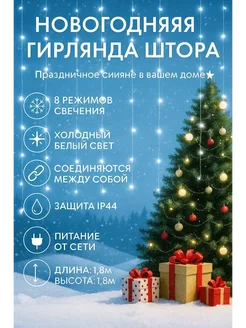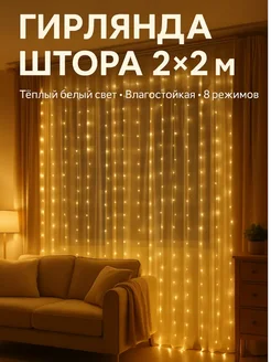 гирлянда штора 2х2 на окно теплый свет