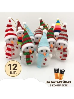 елочные игрушки снеговики светящиеся набор 12 штук