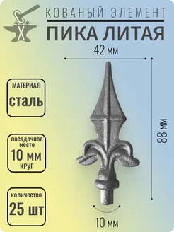 Пика кованая 88х42 мм Посадочное место 10 мм - 25 шт