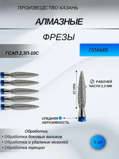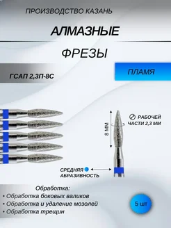 Фреза алмазная пламя синее острое 2,3мм 5 штук. 117967