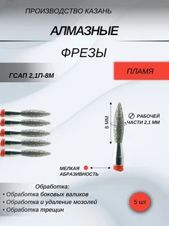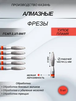Фреза алмазная пламя красное тупое 2,1мм 5 штук. 118033