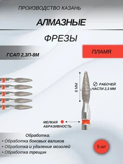 Фреза алмазная пламя красное острое 2,3мм 5штук.117968