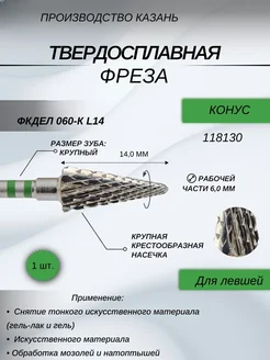 Фреза твердосплавная конус зеленый 6 мм для левшей
