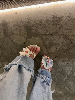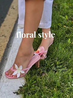 Босоножки на каблуке с цветами
