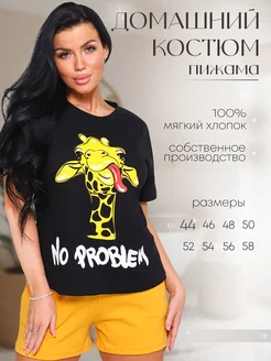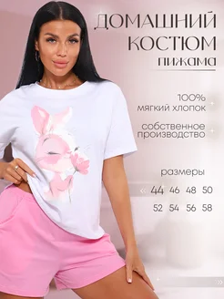 Пижама с футболкой и шортами хлопковая, трикотажный костюм