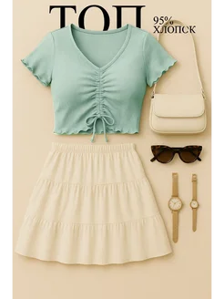 Белый лонгслив укороченный в рубчик с рукавами клеш