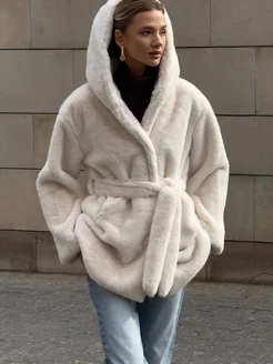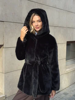 Шуба искусственная короткая экошуба зимняя эко с капюшоном