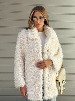 Шуба искусственная зимняя длинная экошуба без капюшона эко