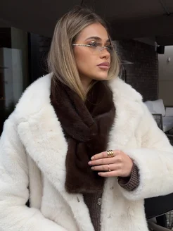 Шарф зимний меховой с прорезью из экомеха норки снуд теплый
