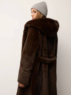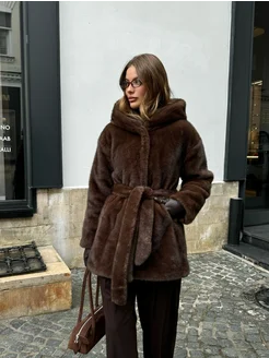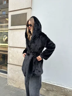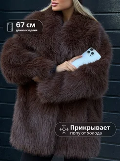 Шуба искусственная зимняя длинная экошуба с капюшоном эко