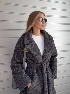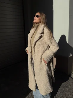 Шуба искусственная зимняя длинная экошуба без капюшона эко