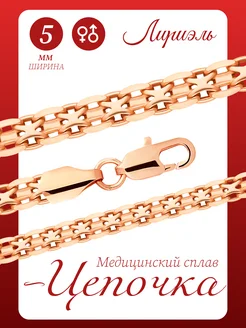 Цепочка на шею позолоченная широкая двухцветная