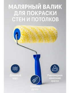 Валик малярный с ручкой 230 мм для покраски стен и потолков