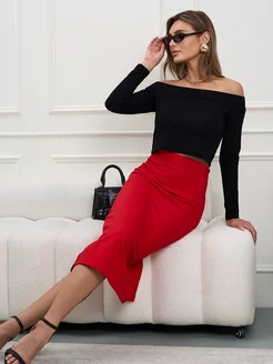 Юбка карандаш женская красная классическая