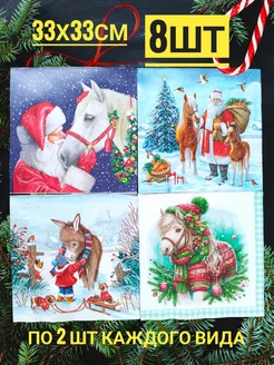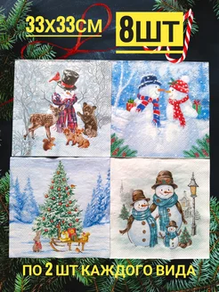 Бумажные новогодние салфетки для декупажа, 33х33 см, 8 шт