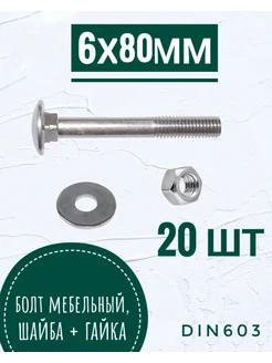 Болт мебельный м6 * 80, гайка и шайба, 20 шт