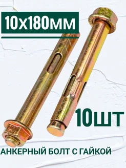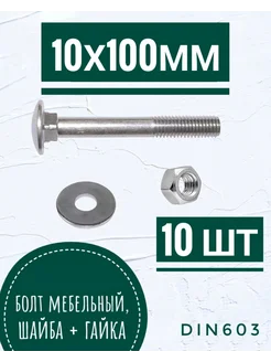 Болт мебельный м10 на 100, гайка и шайба, 10 шт