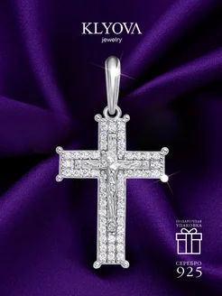 Крест православный серебряный с фианитами