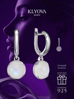Серьги серебро 925 с натуральным лунным камнем