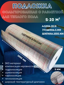 Подложка для напольных покрытий под теплый пол 5 мм 20 м