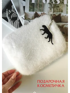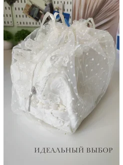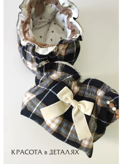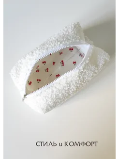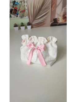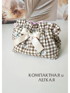 Женская косметичка мягкая тканевая фуле в клетку с бантом