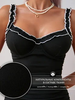 Блузка боди в рубчик без рукавов и горлом вечернее